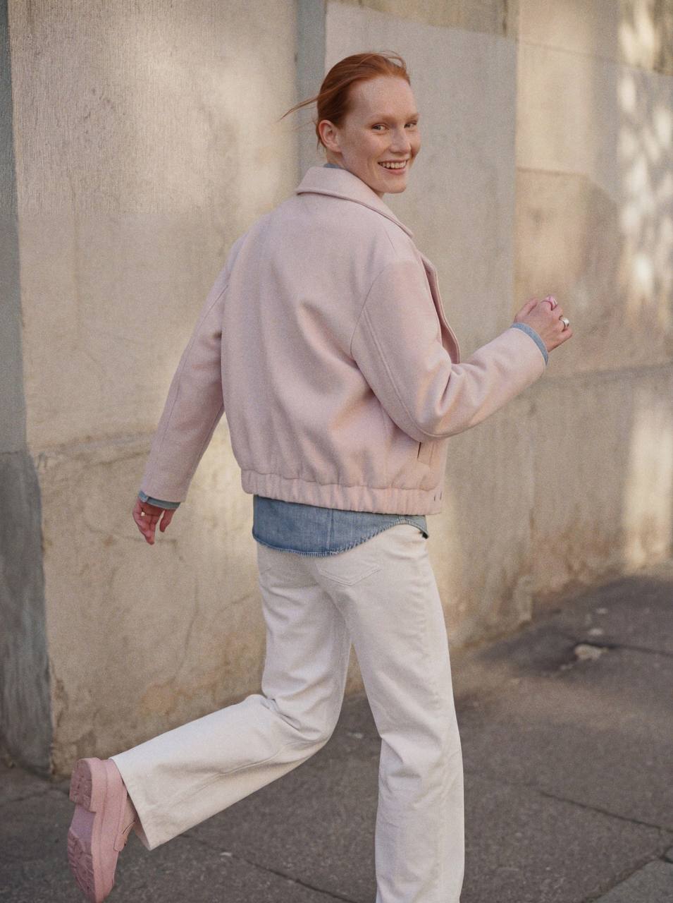 - Бомбер-косуха унисекс из пальтовой шерсти, цвет пыльно-розовый