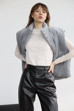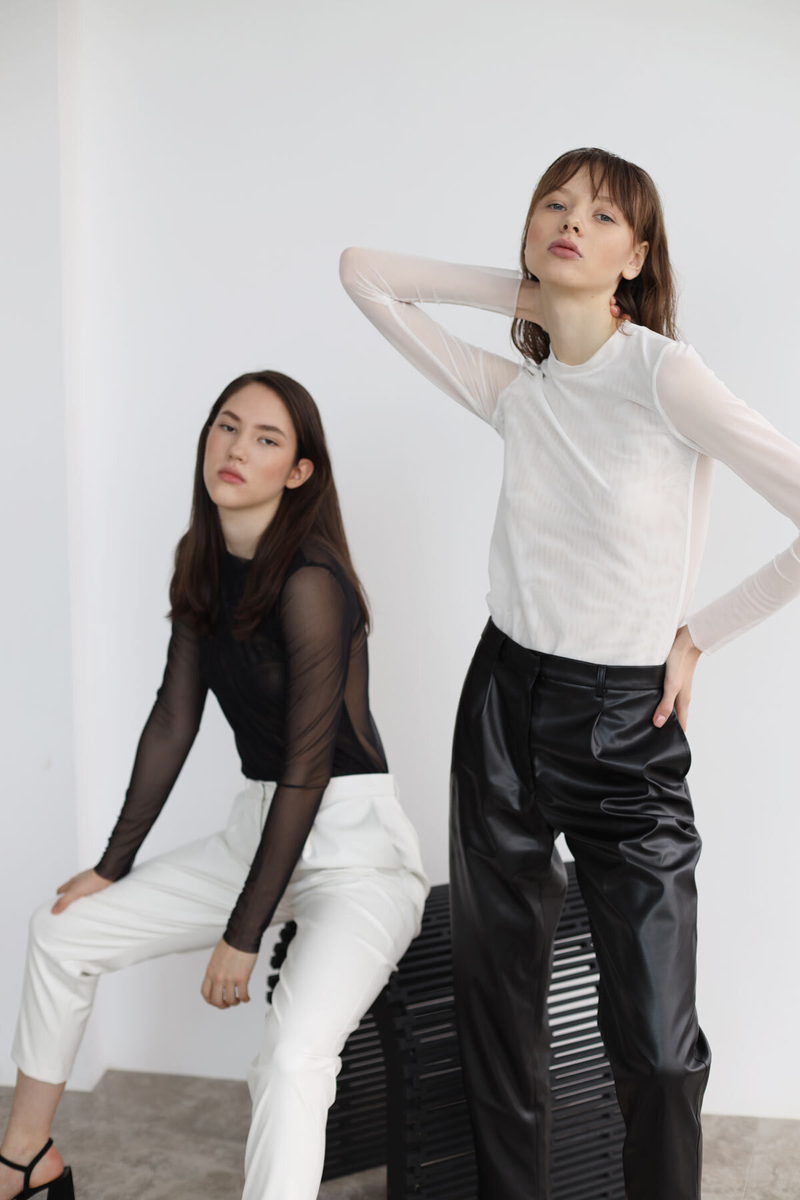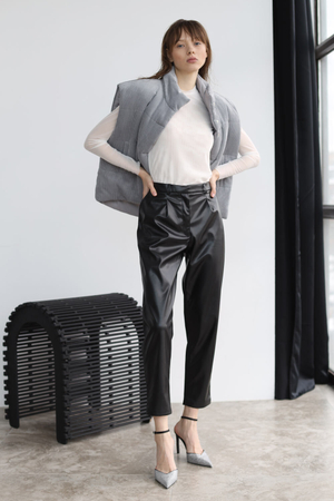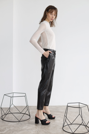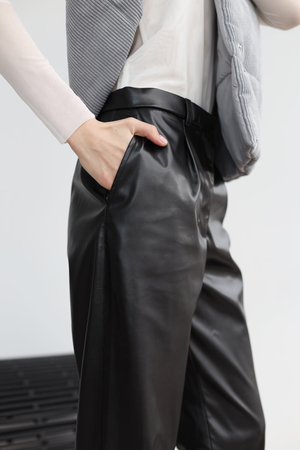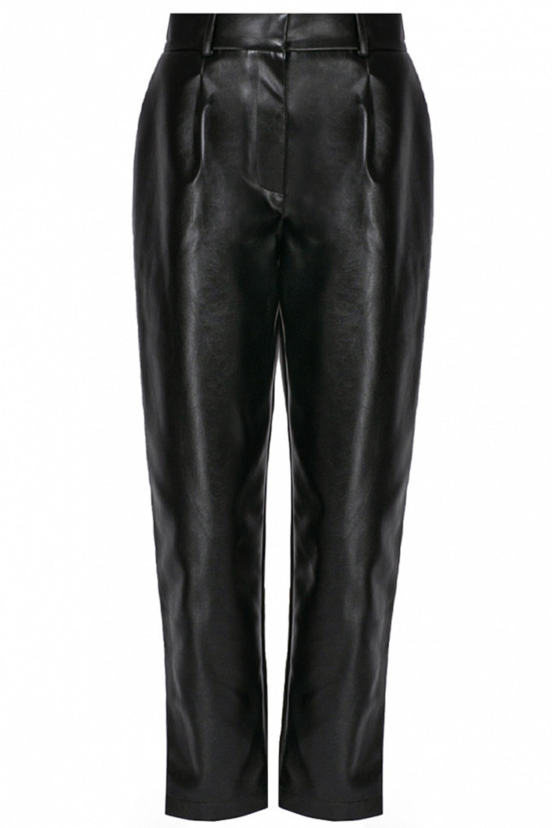 - Брюки-дудочки с защипами, экокожа черный