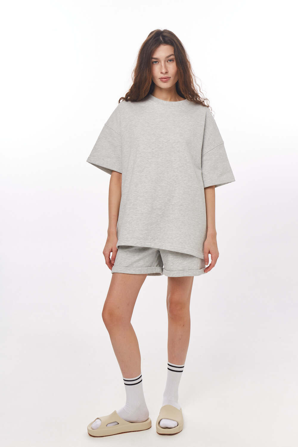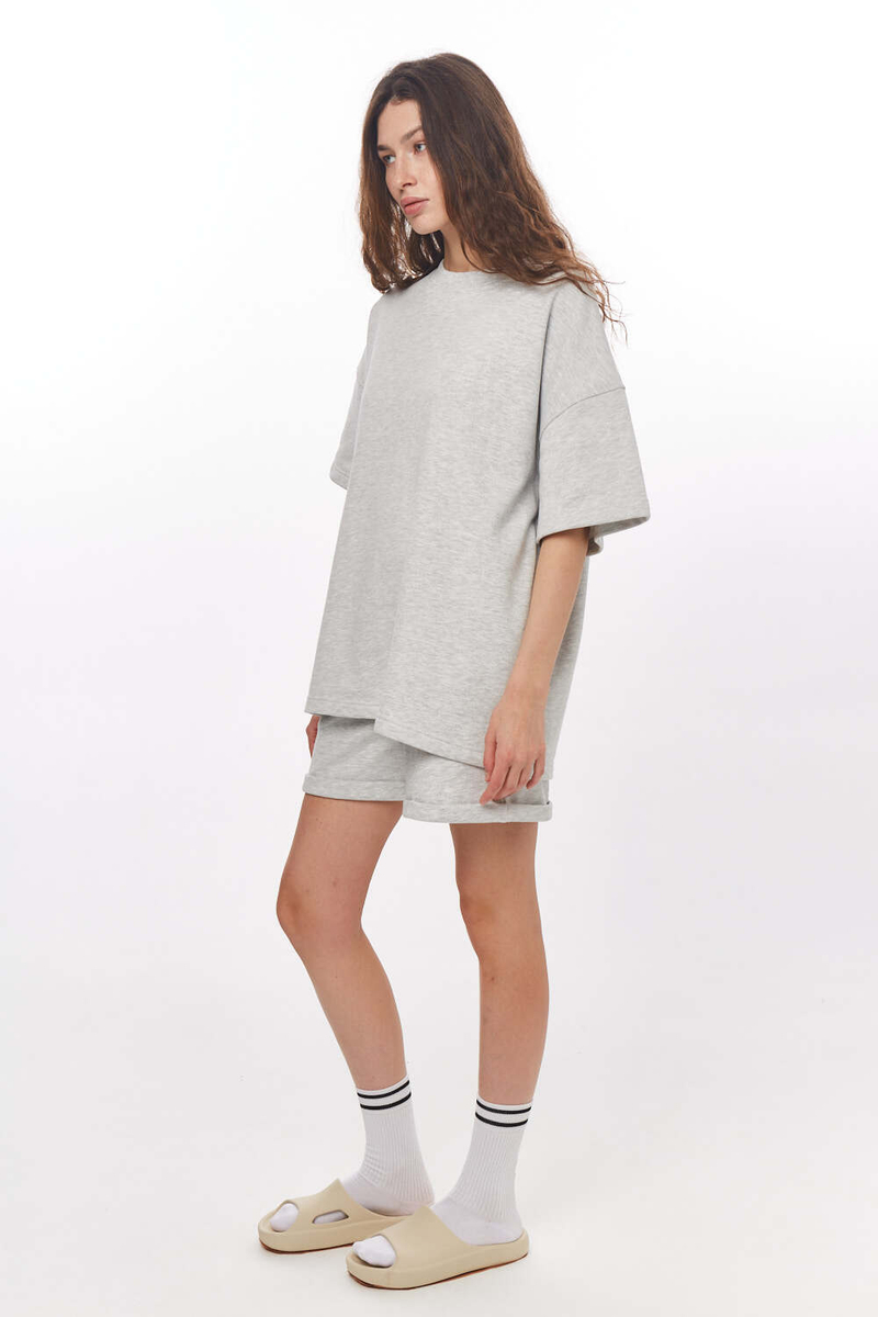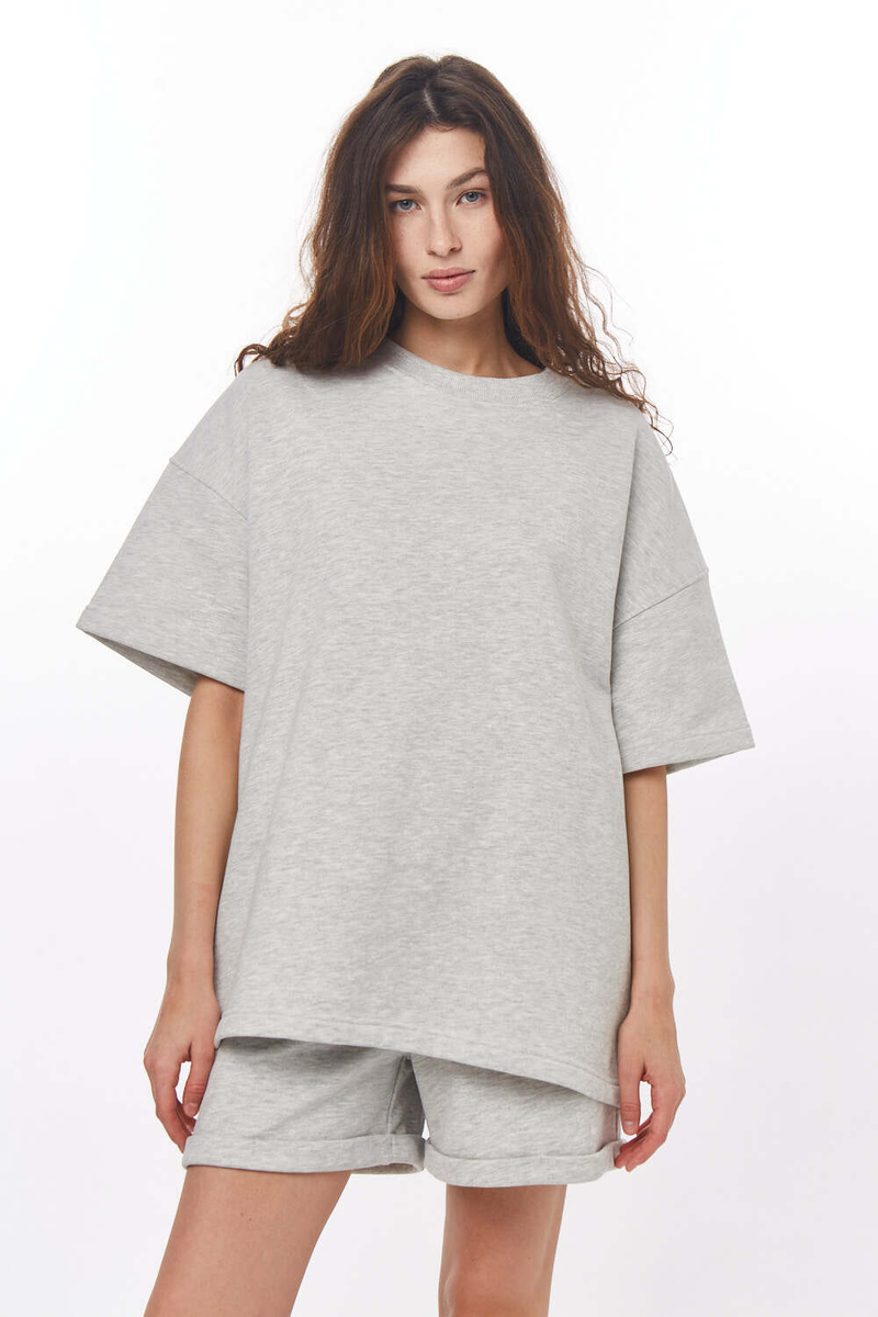 - Футболка "бойфренд" из футера б/н, унисекс, светло-серый меланж