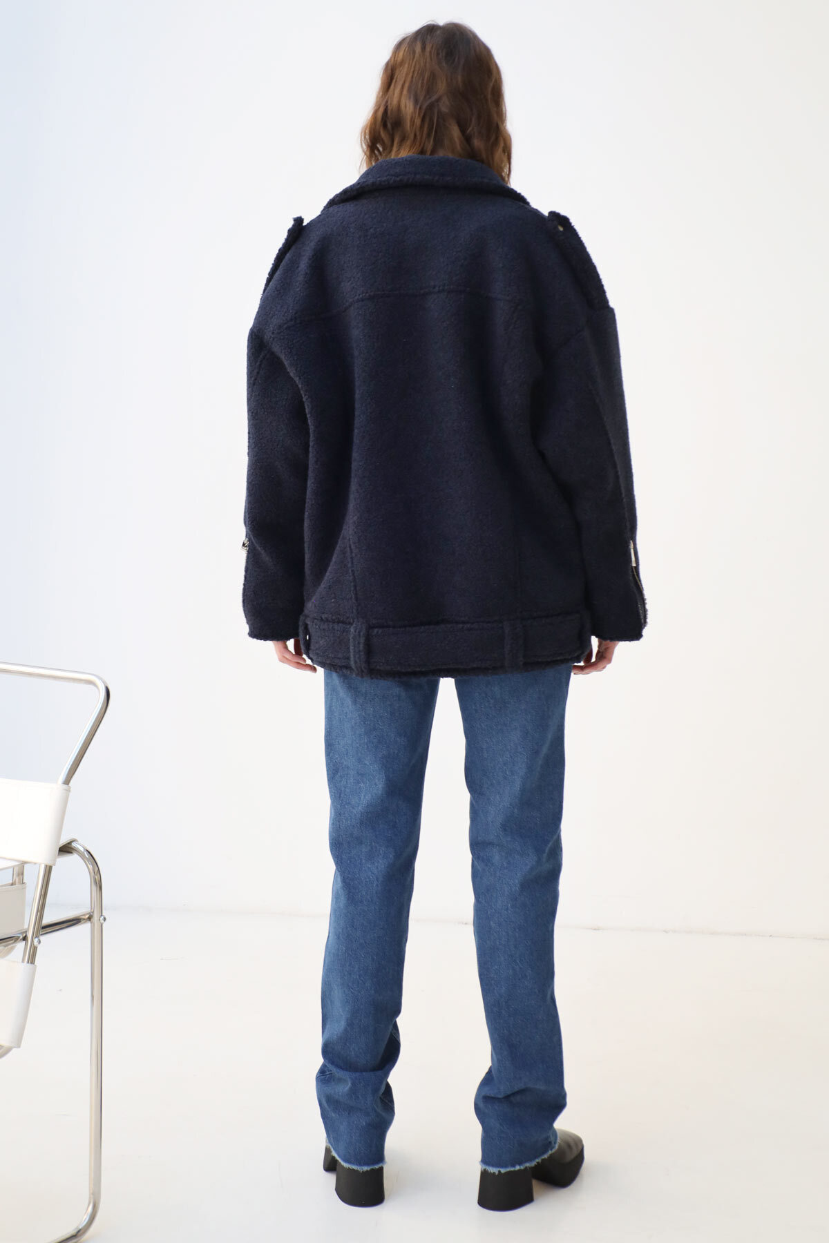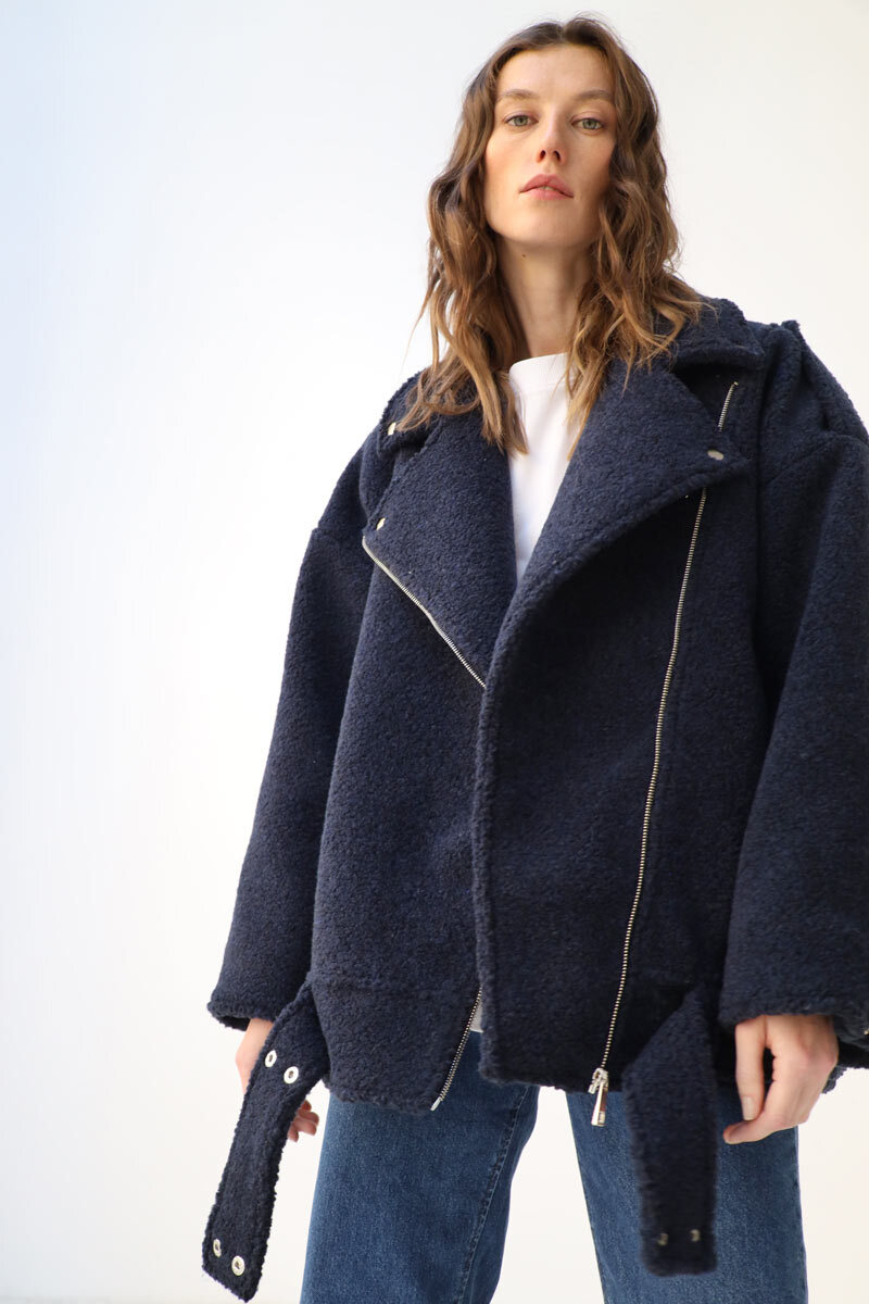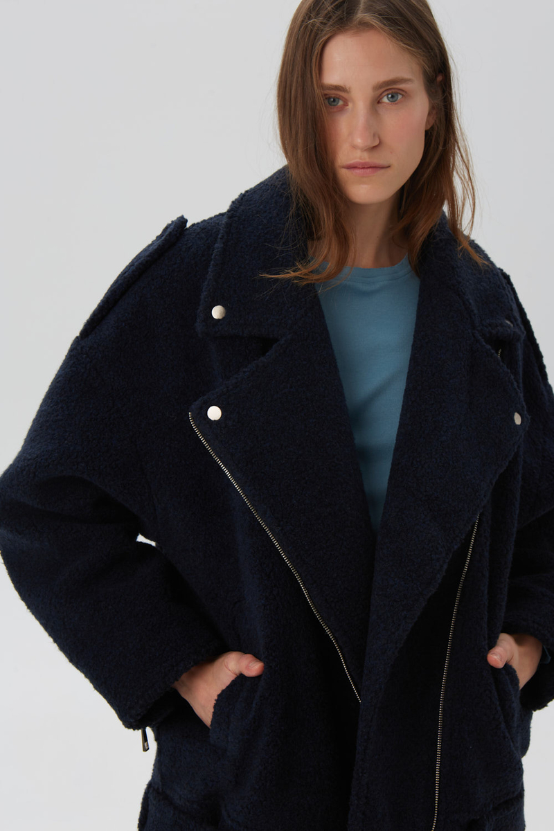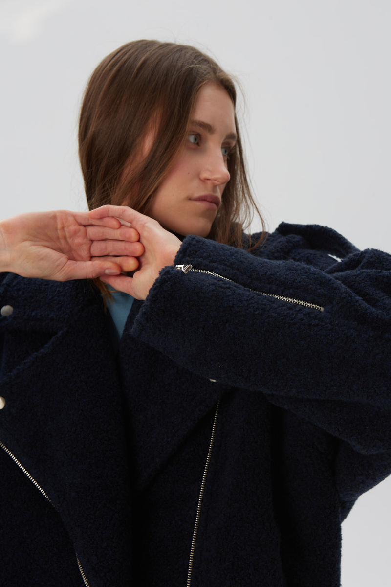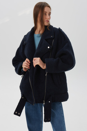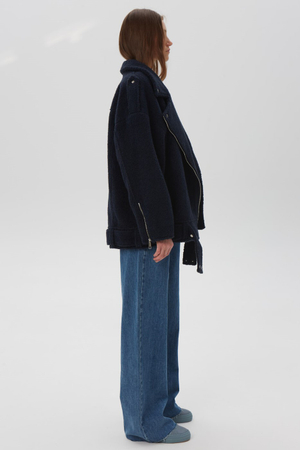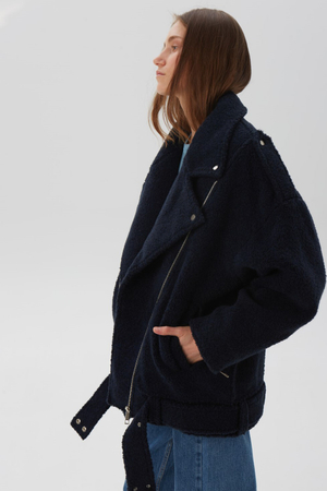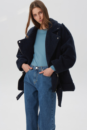 - Косуха из эко-меха утепленная, темно-синий "барашек"