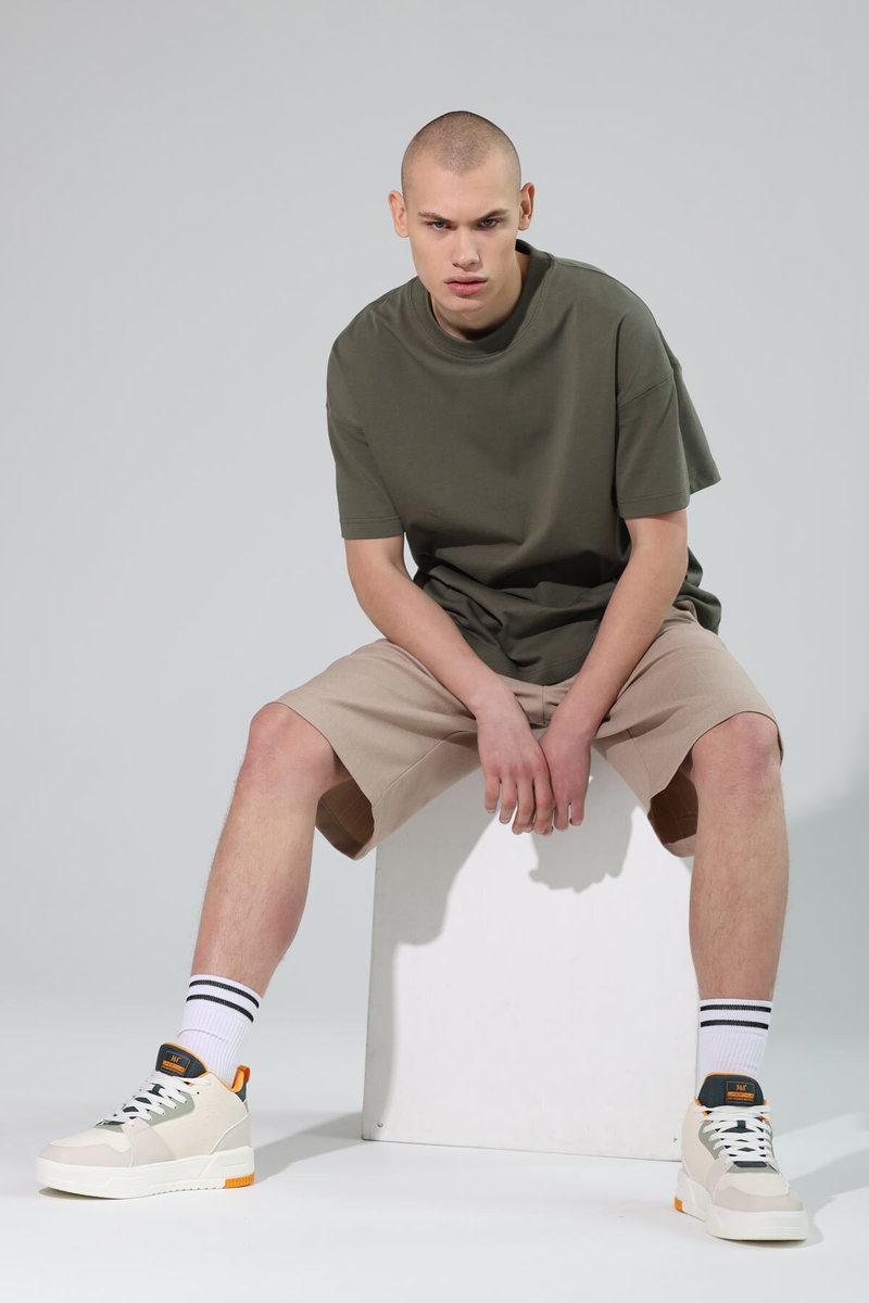 Шорты мужские прямого силуэта с отрезным поясом, частично на резинке, с пятью шлевками, застегивающимся на крючок, одну петлю и пуговицу, застежка - гульфик.