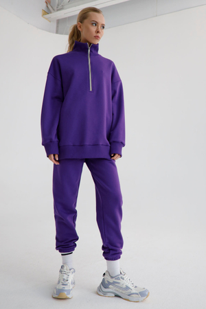 - Брюки-джоггеры с гульфиком из футера, фиолетовый