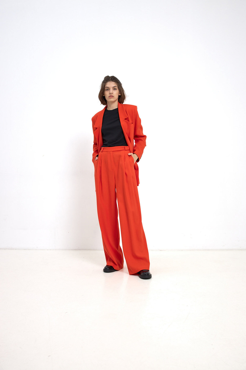 Брюки с двумя складками, красный апельсин