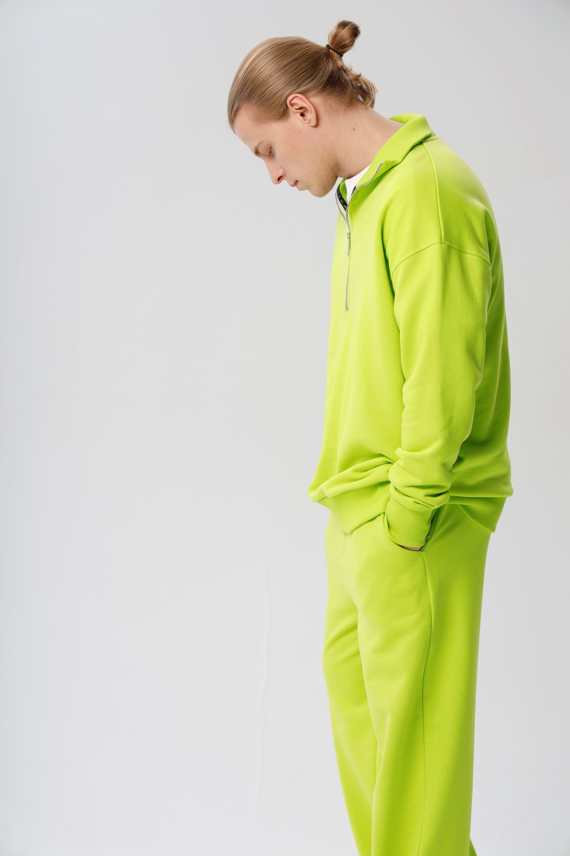 - Брюки широкие из футера б/н мужские, лайм