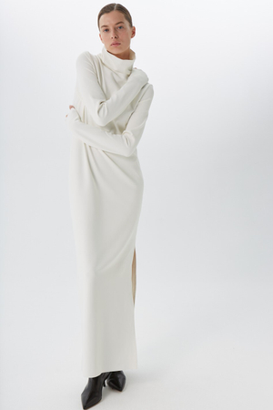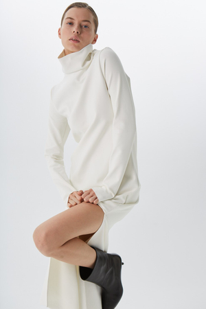 - Платье-водолазка с разрезом, белый