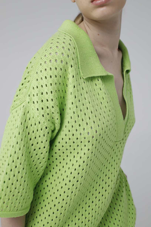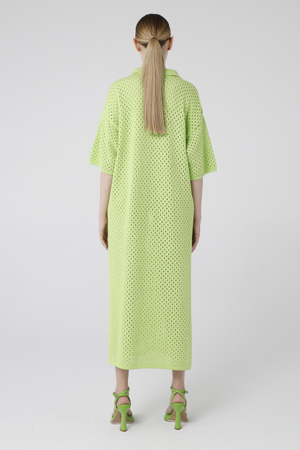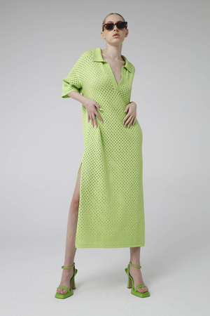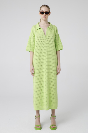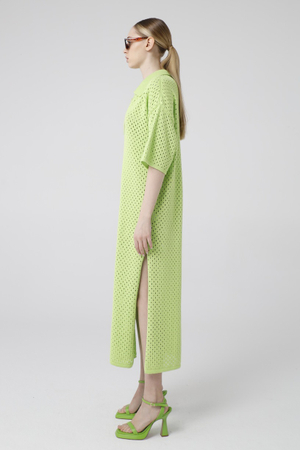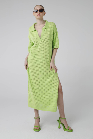 Ультрамодное платье-поло, выполненное в технике кроше в виде сетки.