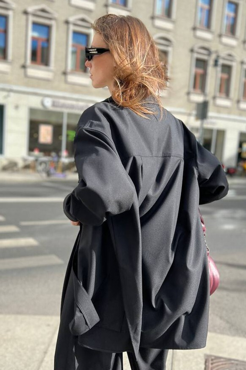 - Рубашка оверсайз из костюмной шерсти, черный
