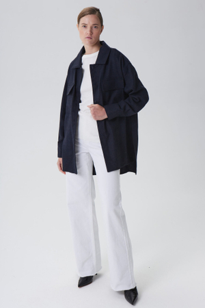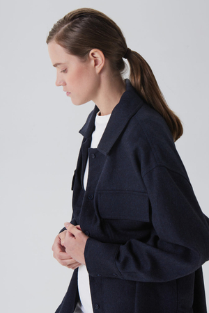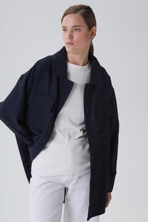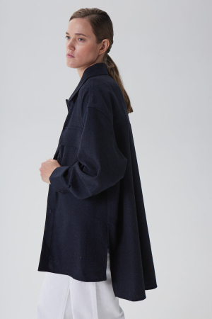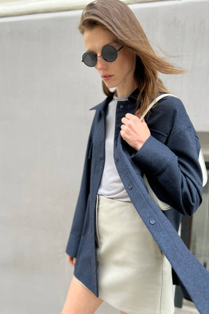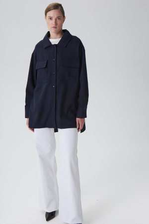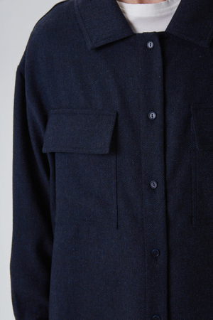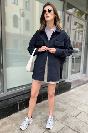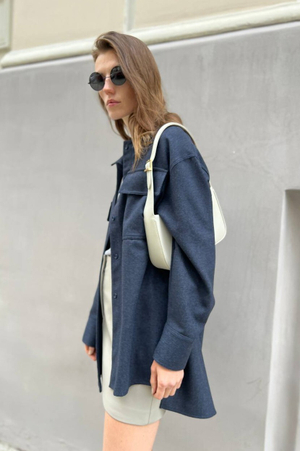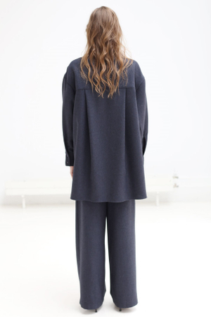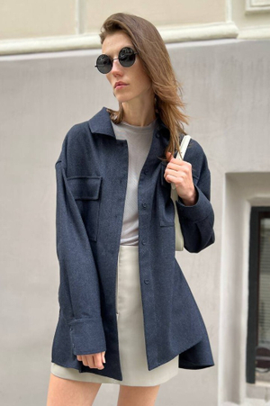 - Рубашка оверсайз из костюмной шерсти, синяя елочка