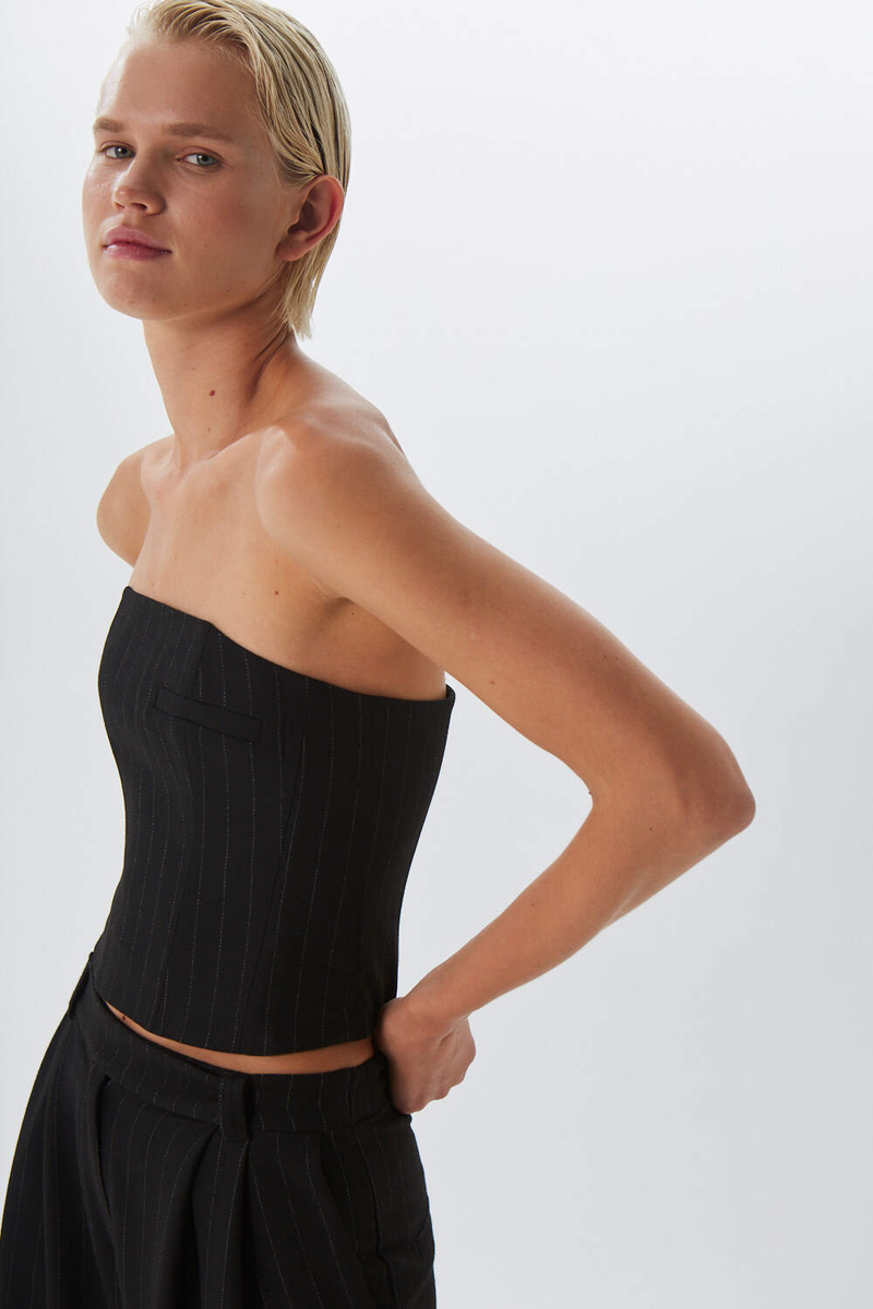 - Топ-корсет на молнии, шерсть, черный в полоску