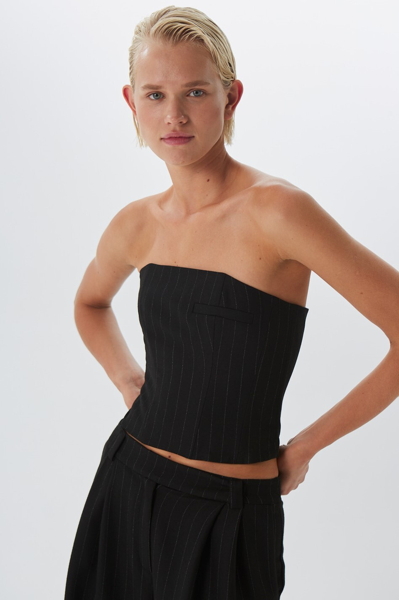 - Топ-корсет на молнии, шерсть, черный в полоску