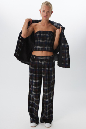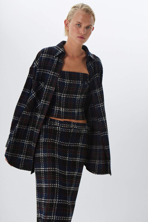 - Топ-корсет на молнии, шерсть, сине-бордовая клетка