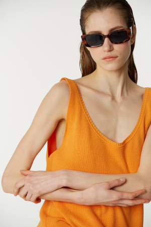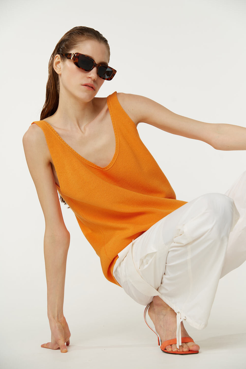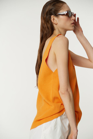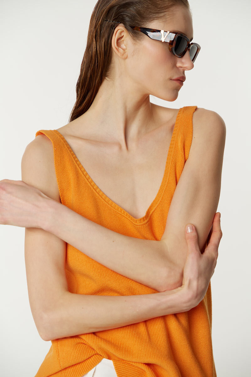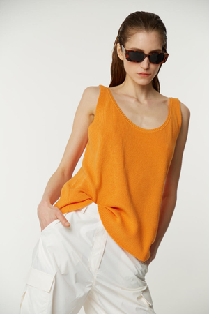 - Майка-алкоголичка вязаная, хлопок, мандарин