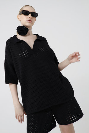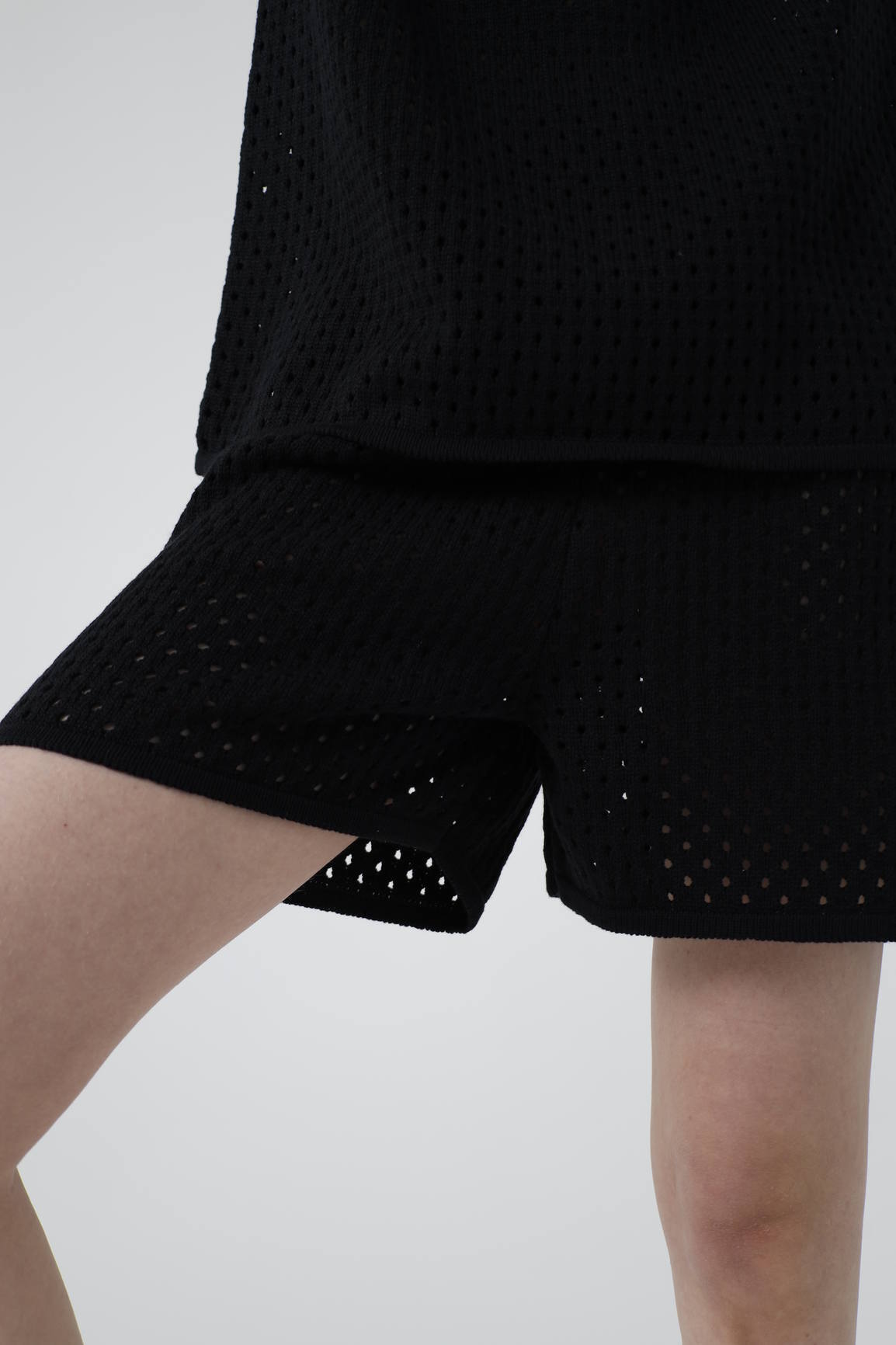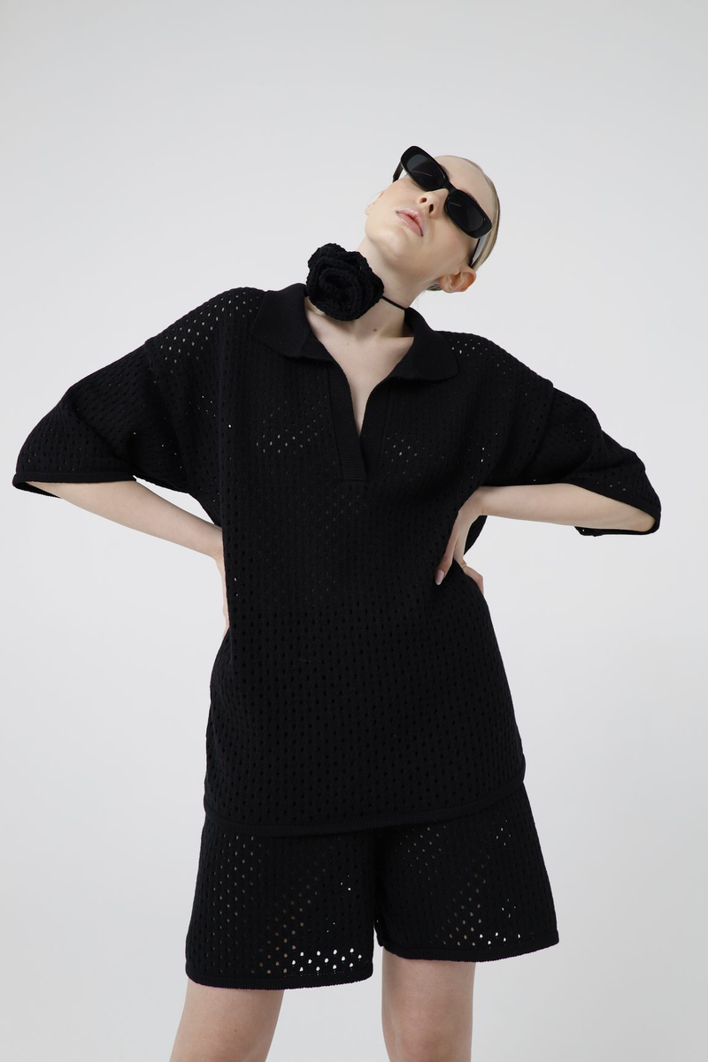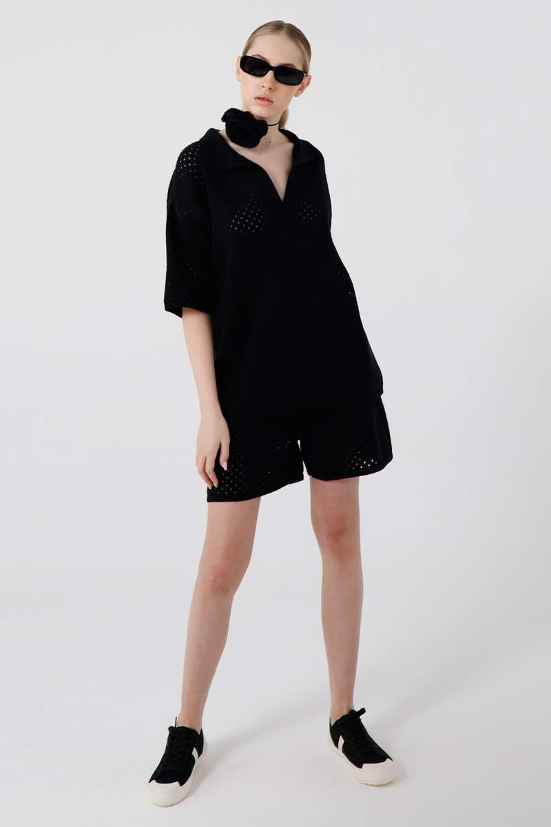 - Вязаные бермуды, кроше, черный