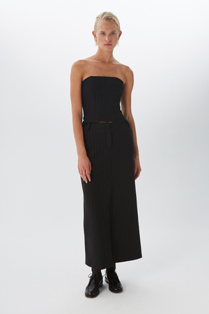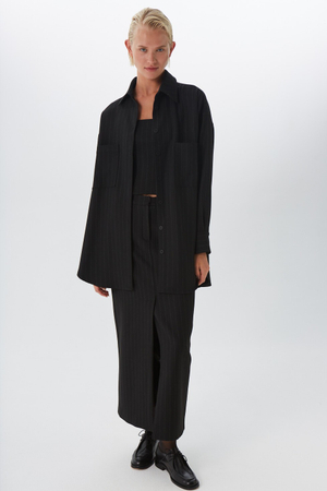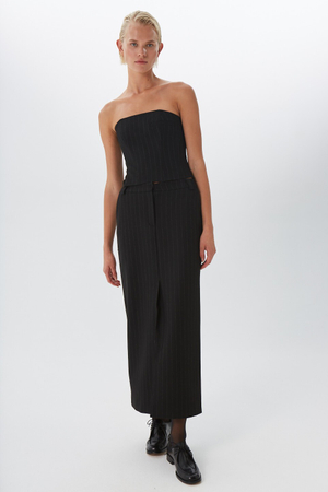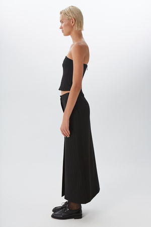 - Юбка макси, шерсть, черный в полоску
