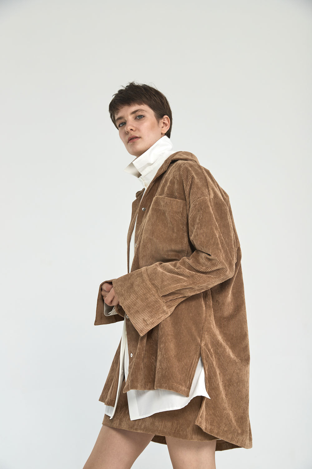 - Юбка мини из вельвета с гульфиком, кэмел