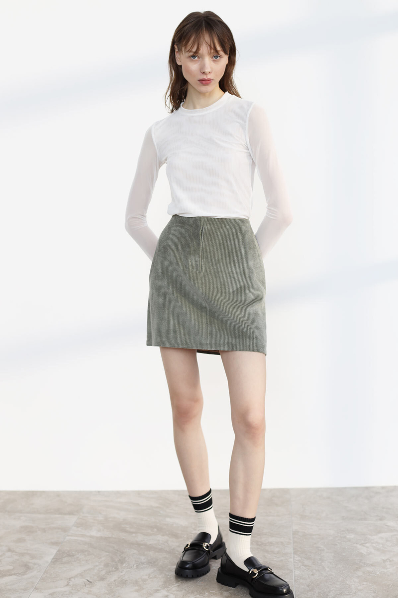 - Юбка мини из вельвета с гульфиком, шалфей