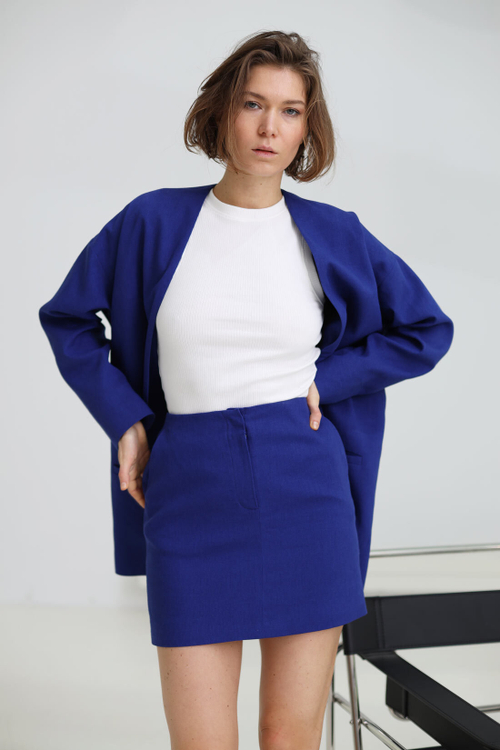 - Юбка мини с гульфиком, лен апельсин
