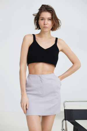 Стильная мини-юбка из 100% льна с гульфиком и карманами.