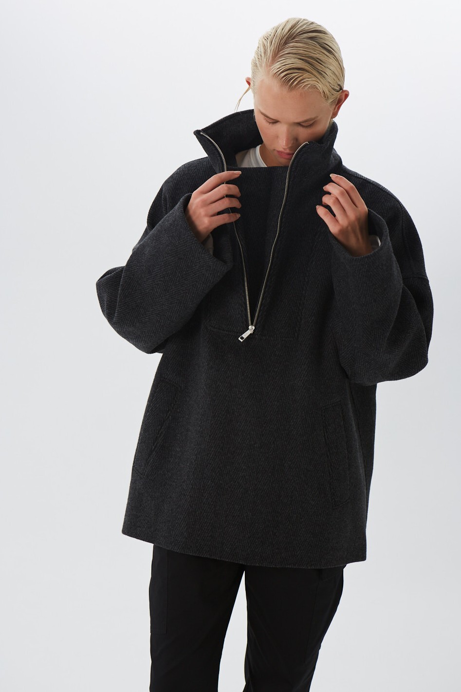 Стильный и практичный оверсайз анорак из шерстяной ткани - отличная альтернатива куртке или свитеру.
