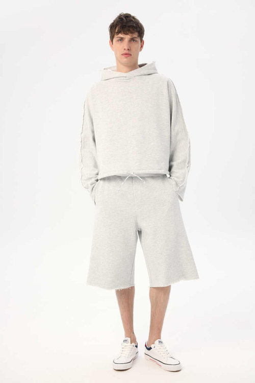 - Кроп-худи унисекс б/н, светло-серый меланж
