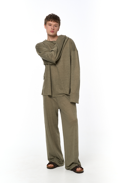 - Брюки широкие из льняного трикотажа мужские, черный