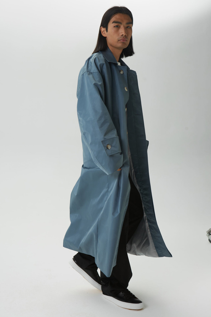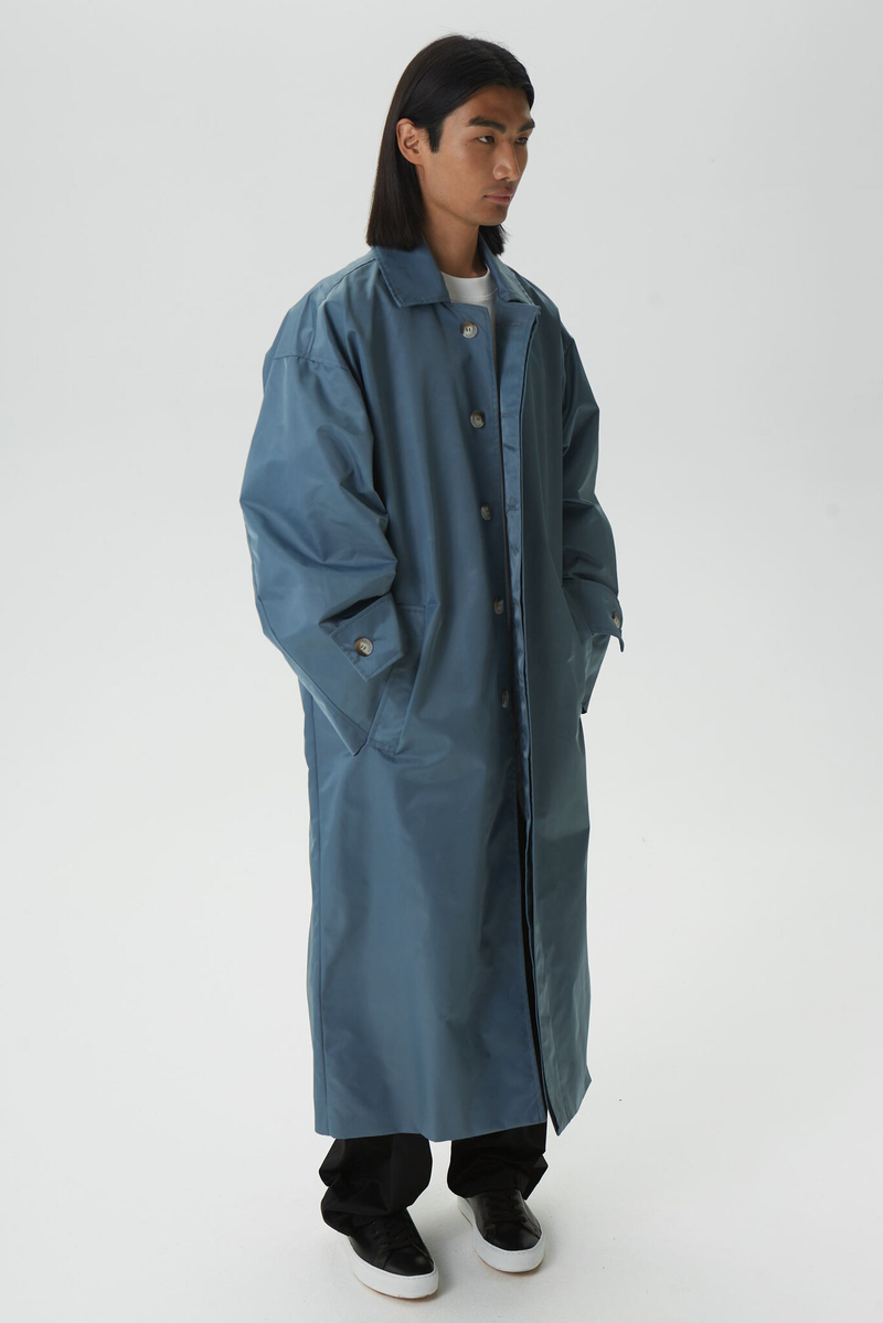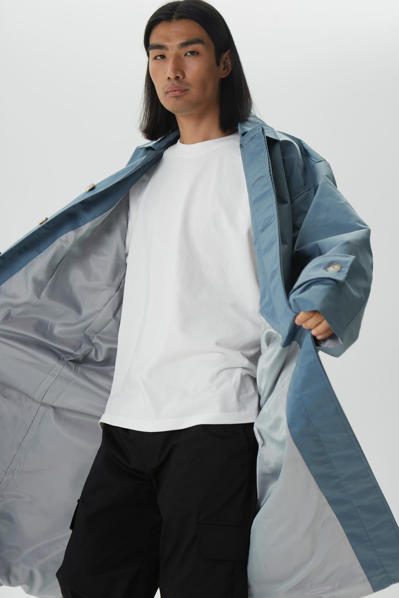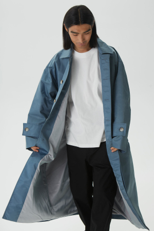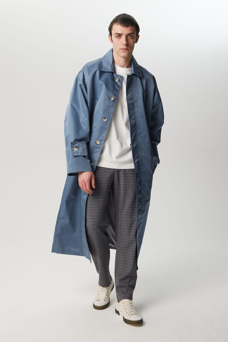 - Тренч оверсайз мужской, серо-синий