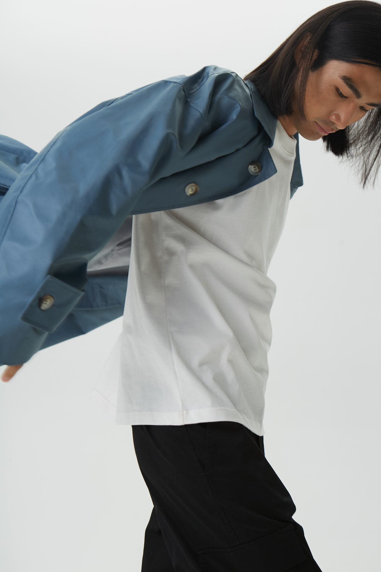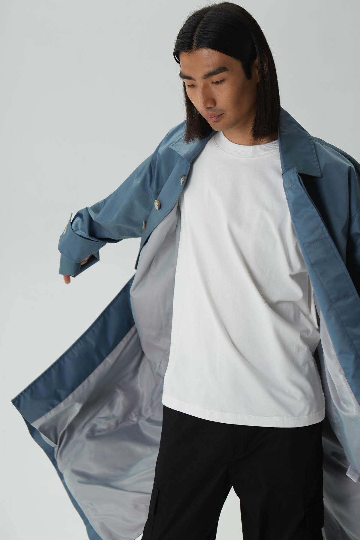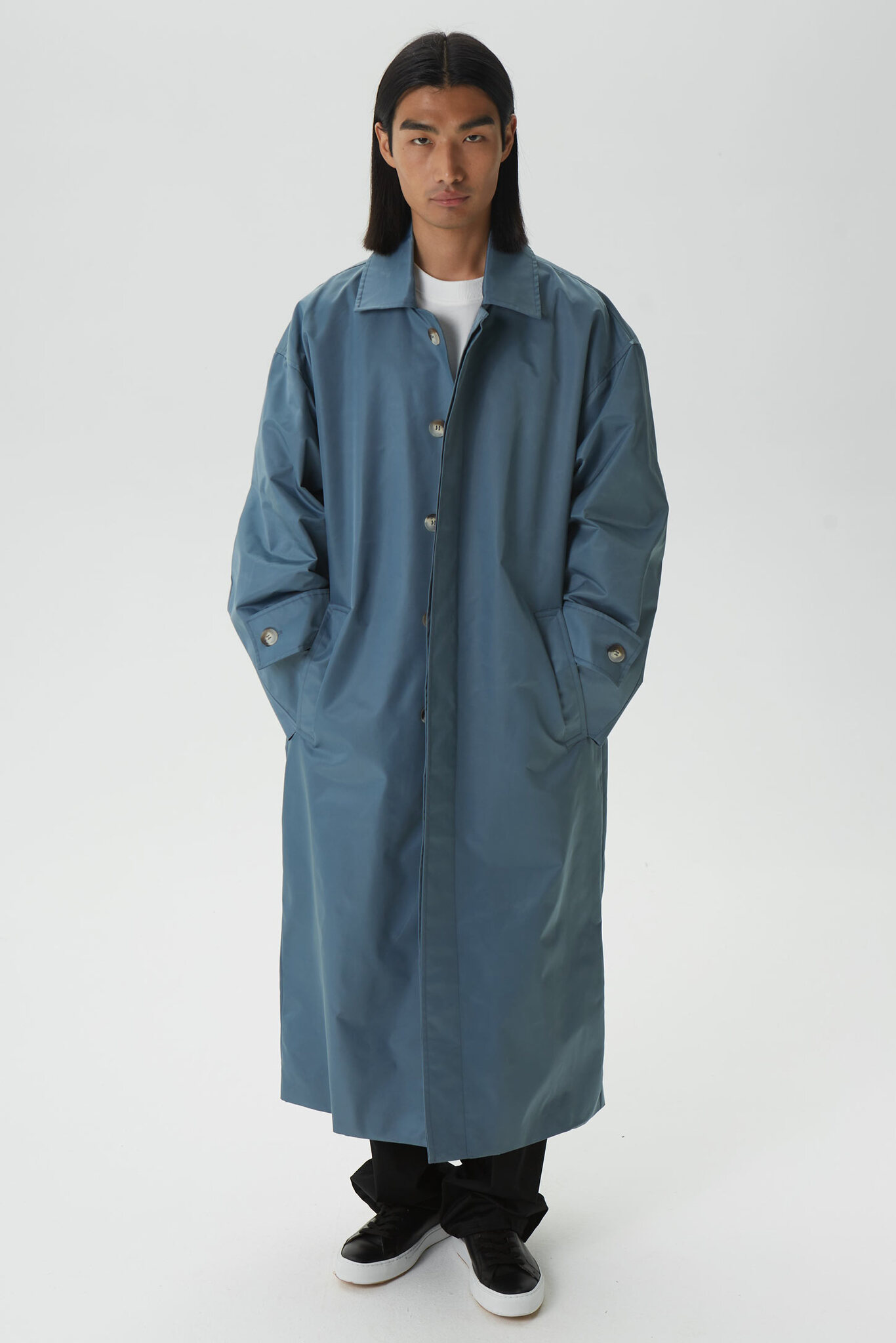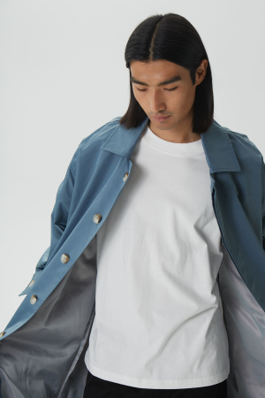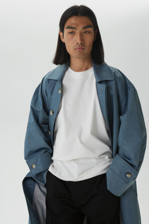 - Тренч оверсайз мужской, серо-синий