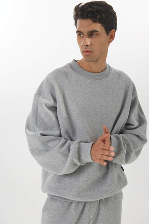 - Свитшот оверсайз из футера с начесом мужской, серый меланж