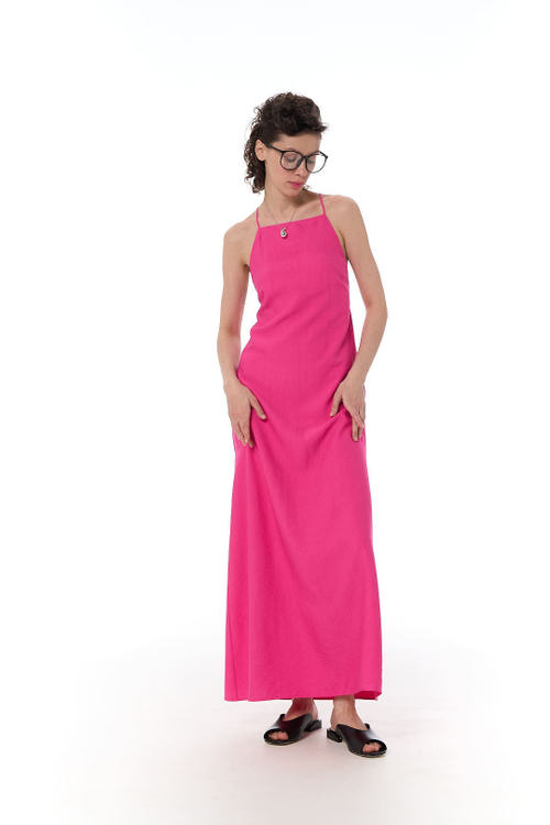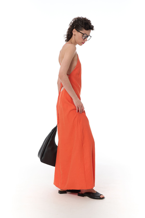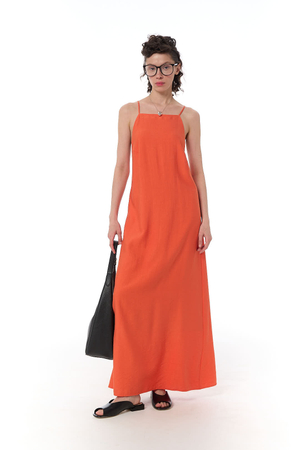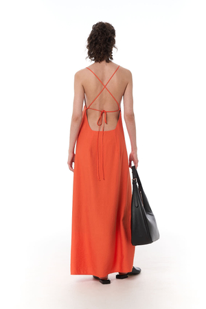 - Платье макси с графичным вырезом на спинке, фактурная вискоза, апельсин