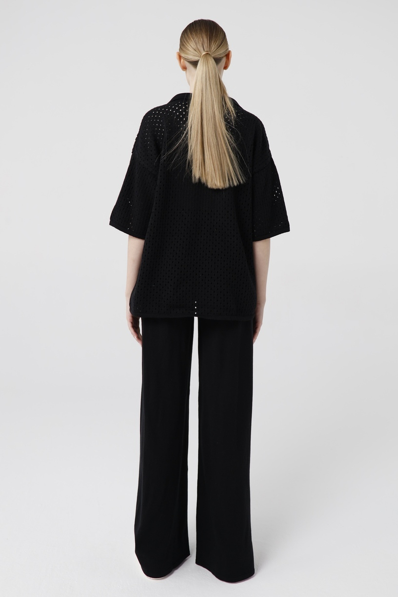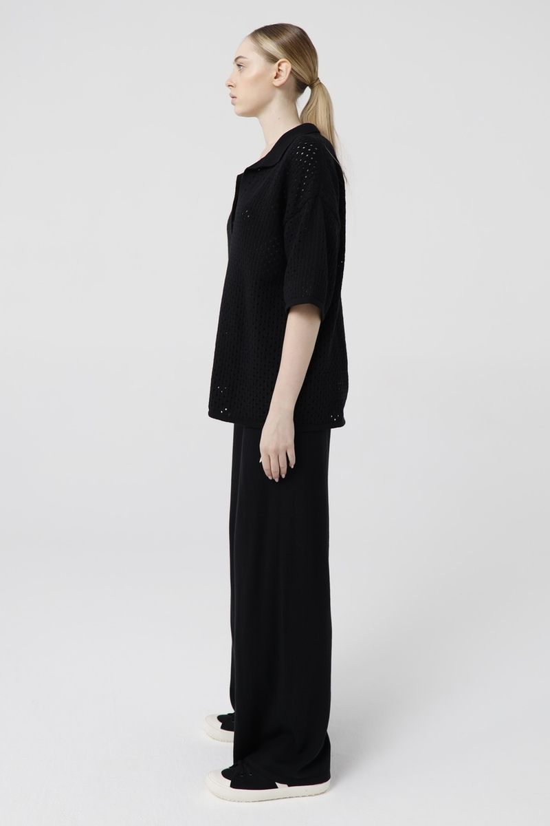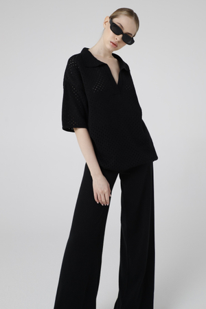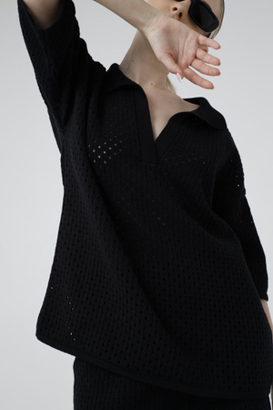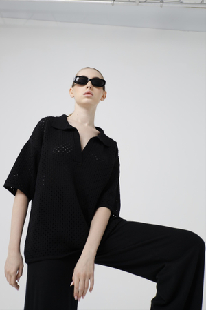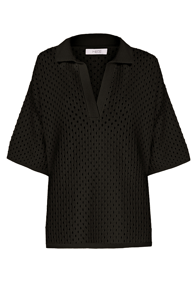 - Футболка-поло, кроше, черный