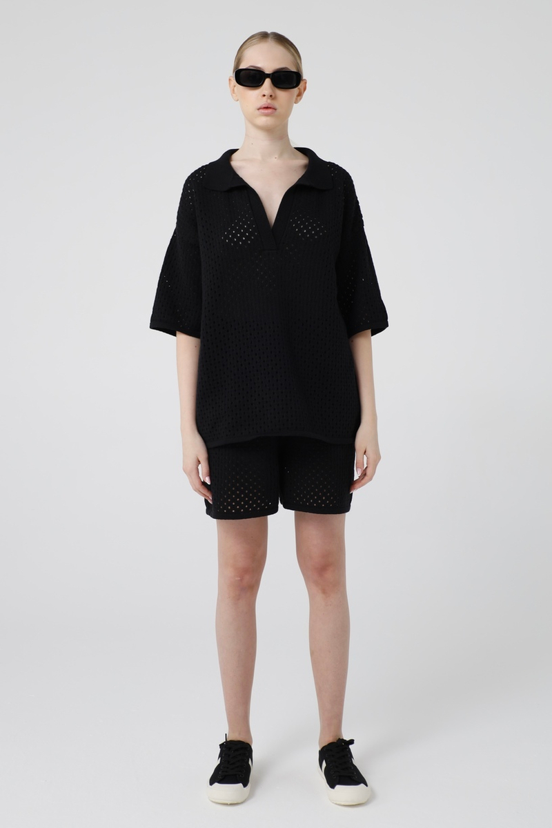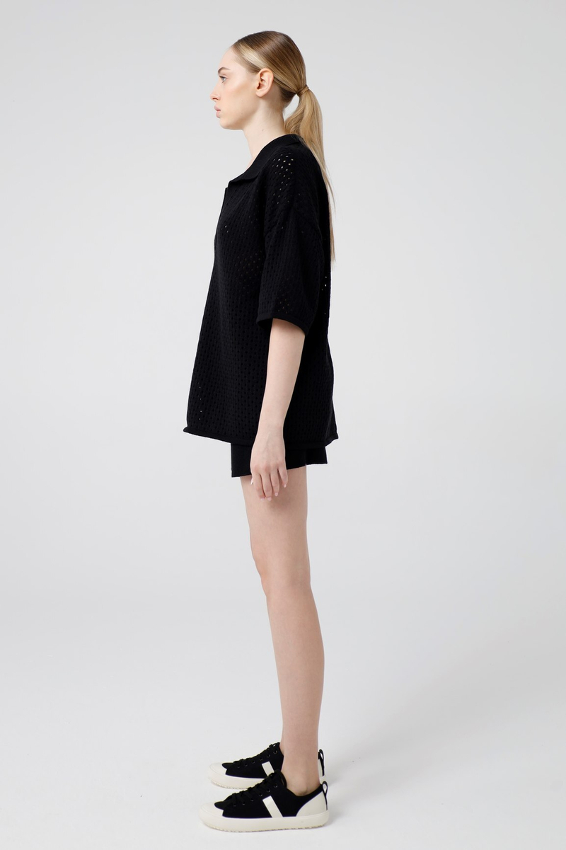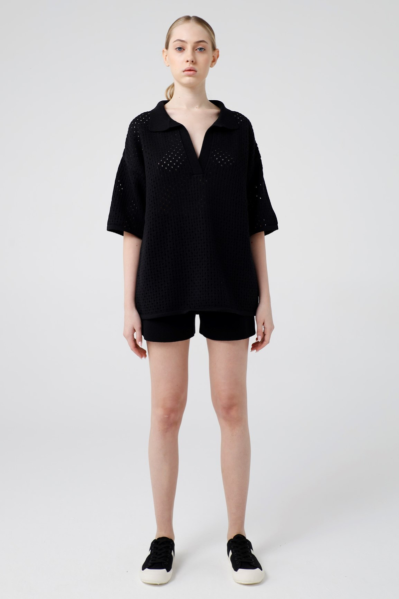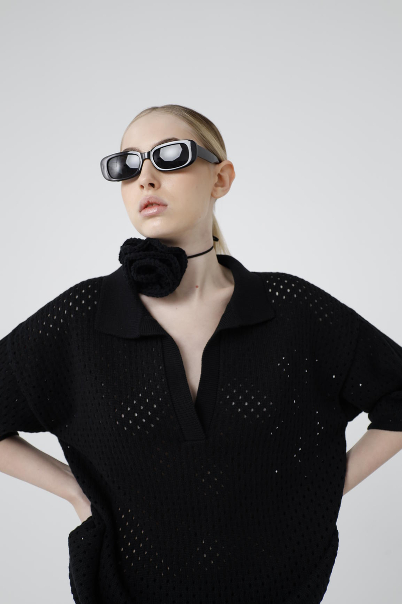 - Футболка-поло, кроше, черный