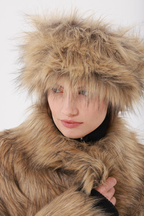 - Пальто из экомеха оверсайз длинное, волк
