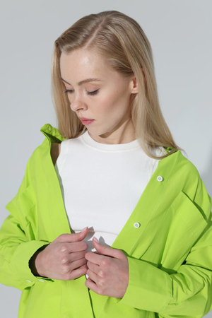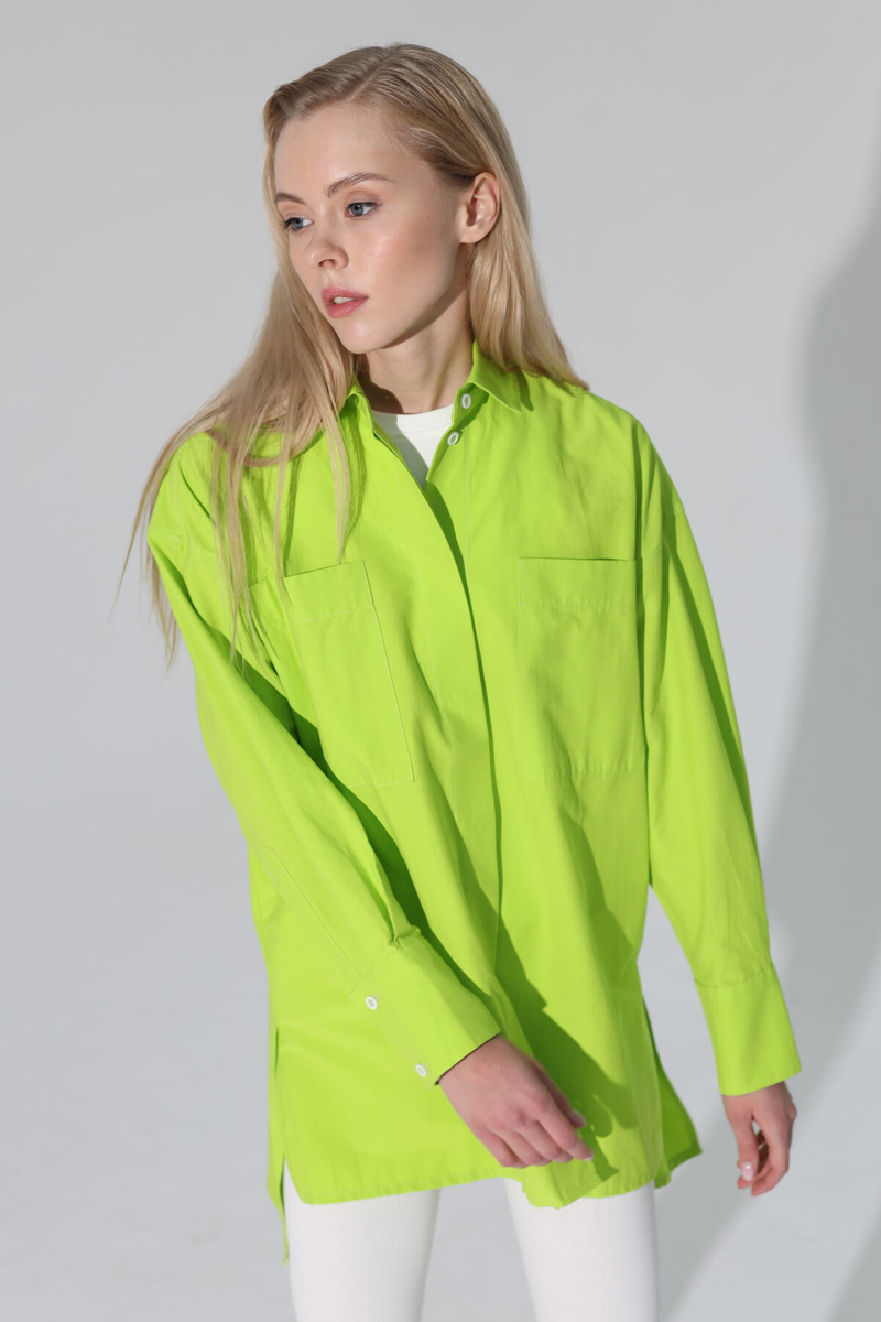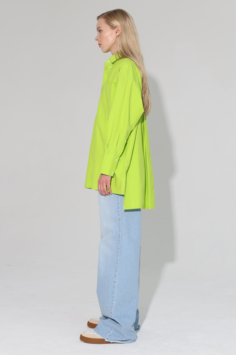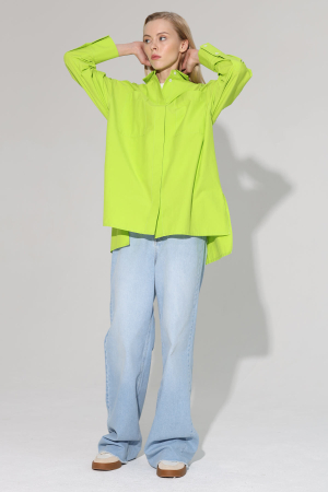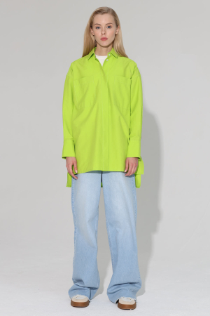 Рубашка оверсайз в мужском стиле базового фасона из хлопка со скрытой (супатной) застежкой.