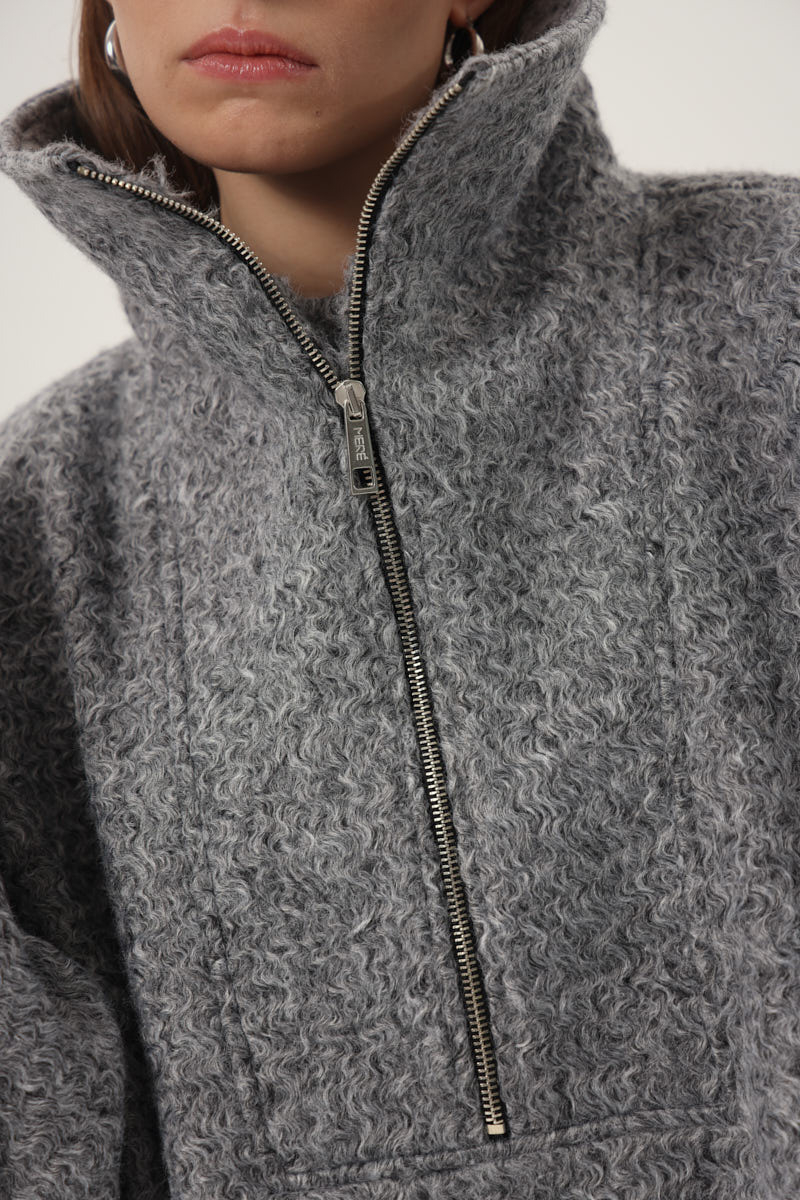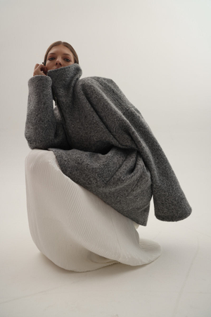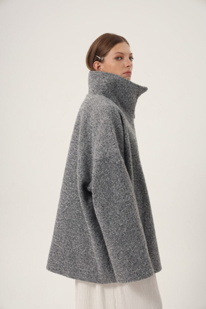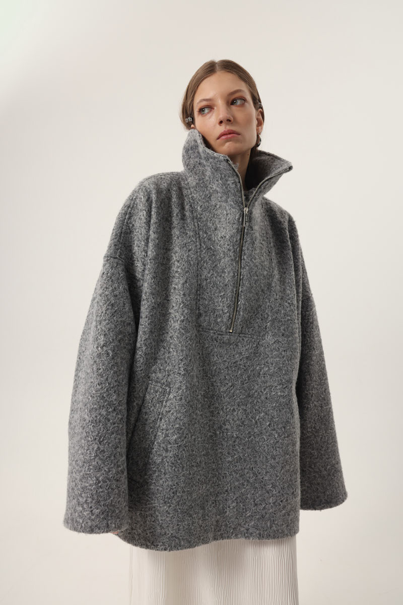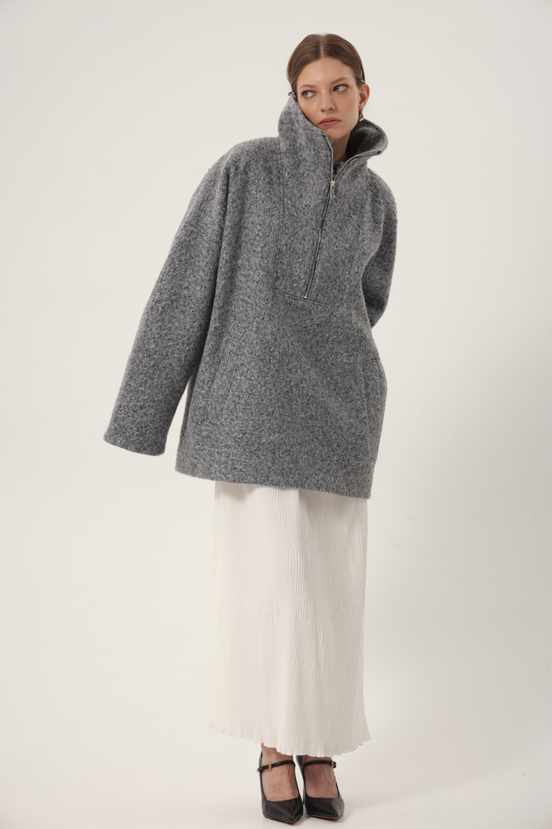 - Анорак оверсайз из пальтовой ткани унисекс, жемчужно-серый