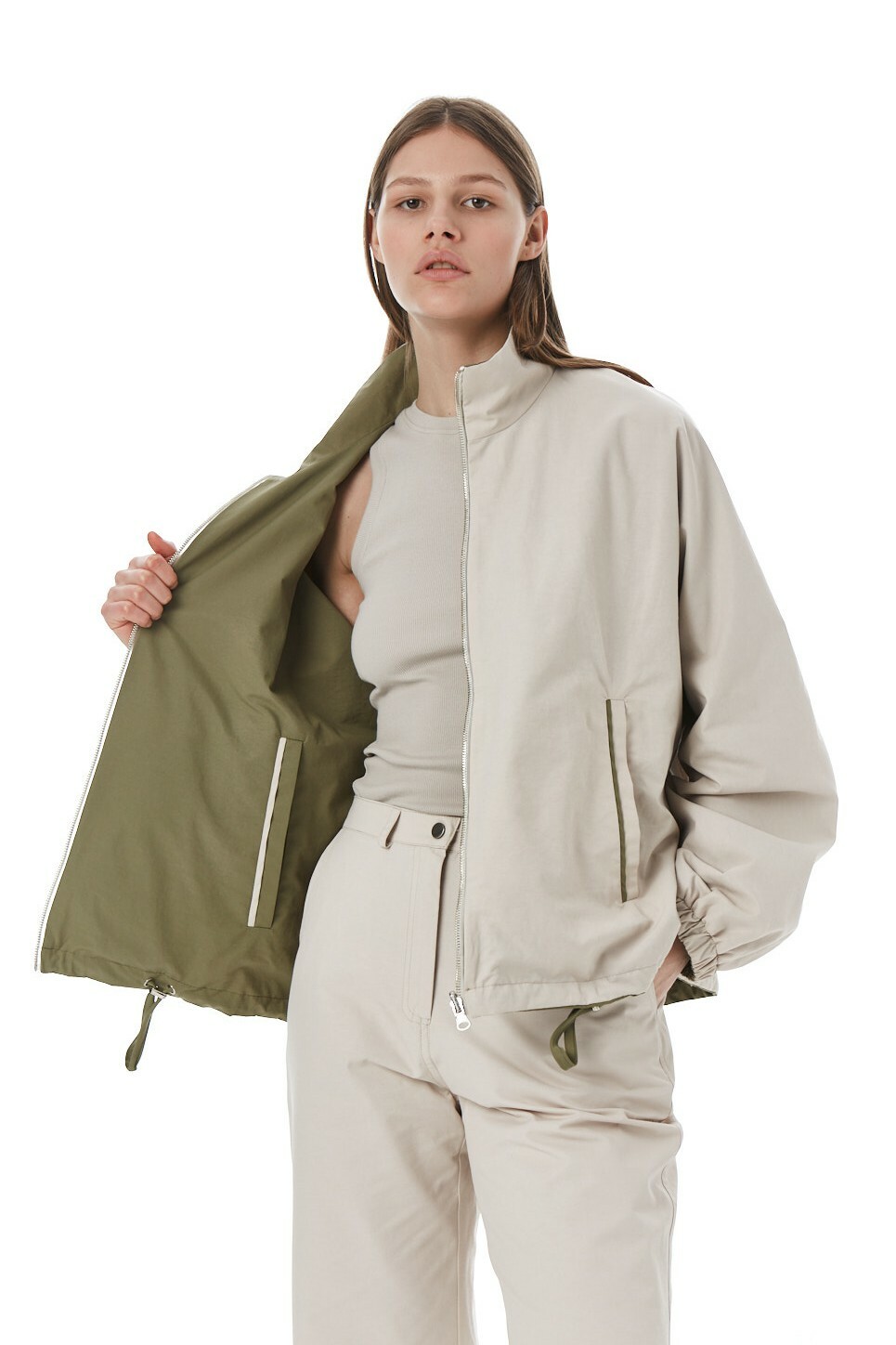 - Олимпийка двусторонняя женская из хлопковой плащевки, хаки/беж