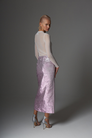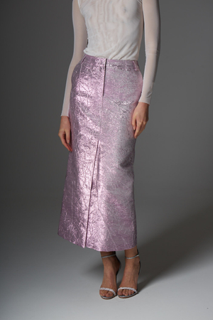 Юбка макси, жаккард, розовый металлик