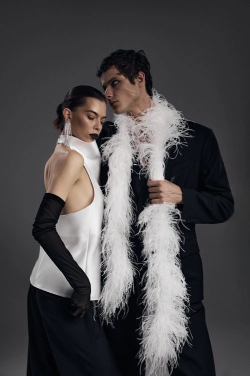 «NOIRE, как черно-белое кино» — это синтез моды и изобразительного искусства, где черно-белое кино встречает современную алхимию материалов. Коллекция превращает одежду в артефакт, а каждый образ — в момент художественной постановки, застывший на границе между реальностью и сценой.